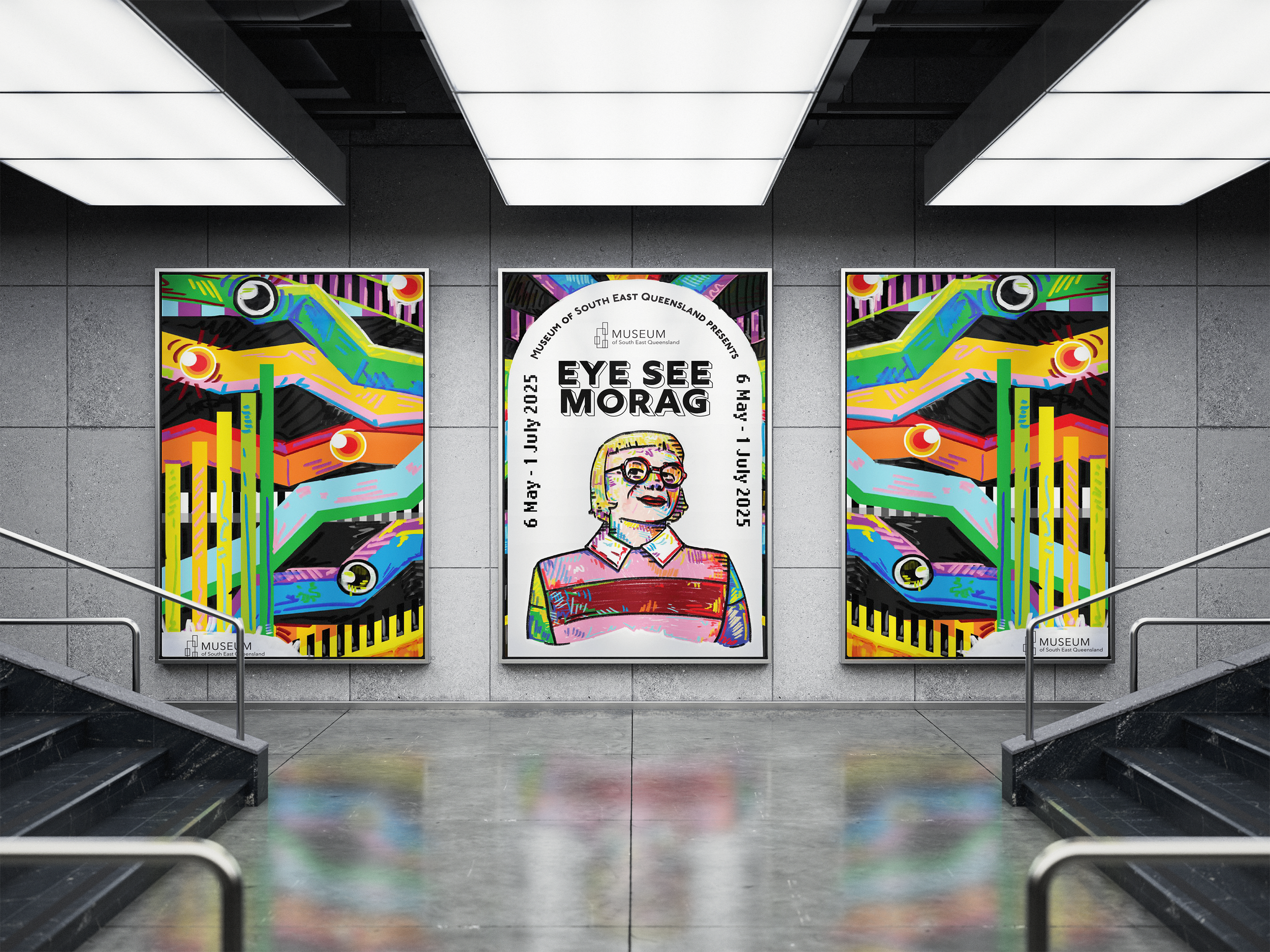 Banners for Queensland meant to show off the new exhibition of Morags work, which shows off a lot of her style, being bright colours and strong shapes. Set of three banners meant to be shown together.
